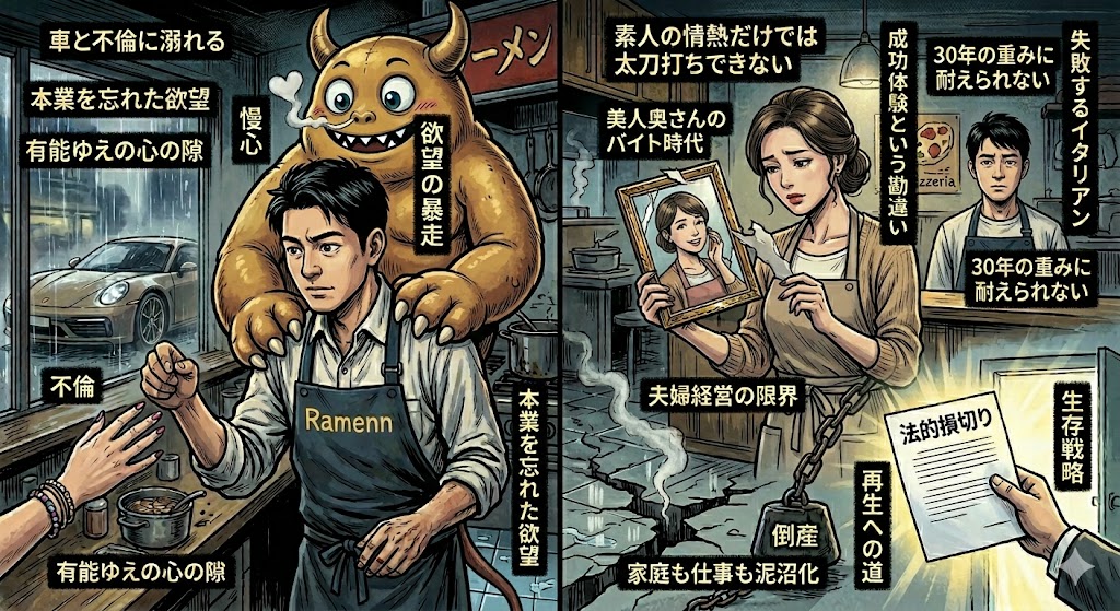 有能な店主が陥る不倫と放蕩の罠と美人妻の成功体験が招く飲食経営の破綻