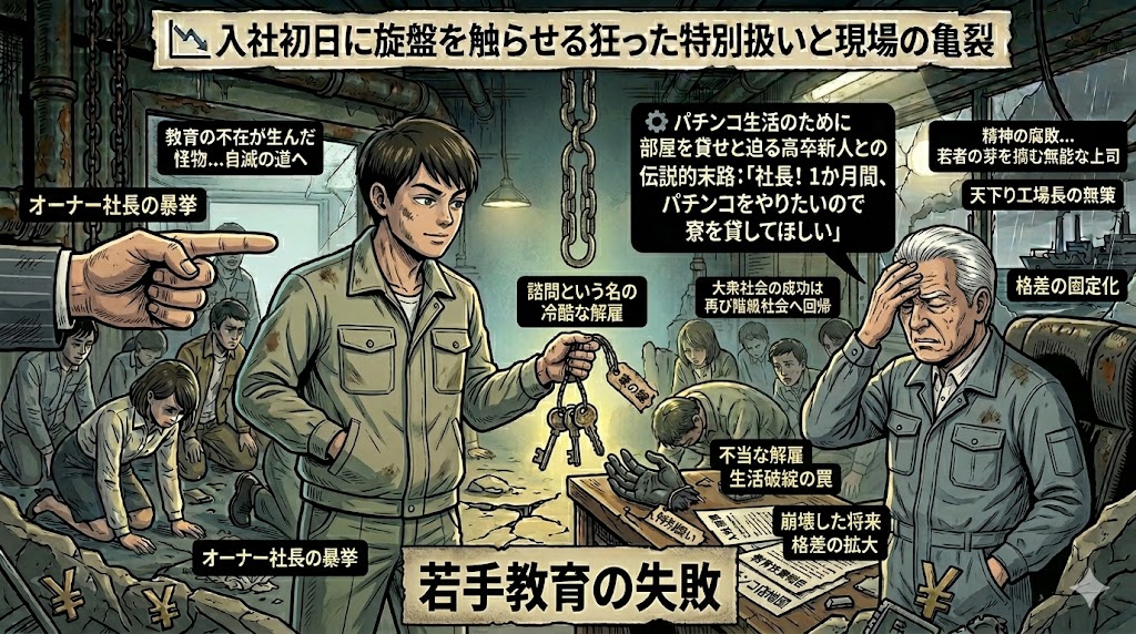 特別扱いとパチンコ逃避が招く高卒新人の自爆と無策な天下り工場長