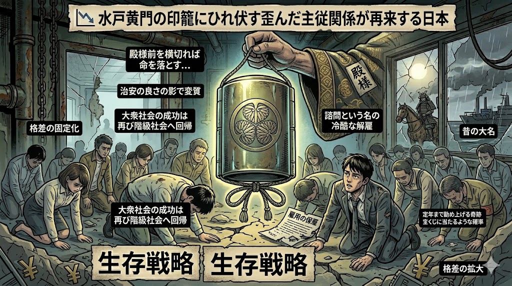 📉 水戸黄門の印籠にひれ伏す歪んだ主従関係が再来する日本 日本的格差社会の正体をイメージできている若者は極めて少ない。治安の良さや礼儀正しさを絶賛するインバウンドの影で変質は進んでいます。かつて水戸黄門の印籠一つで民衆がひれ伏した光景を思い... -