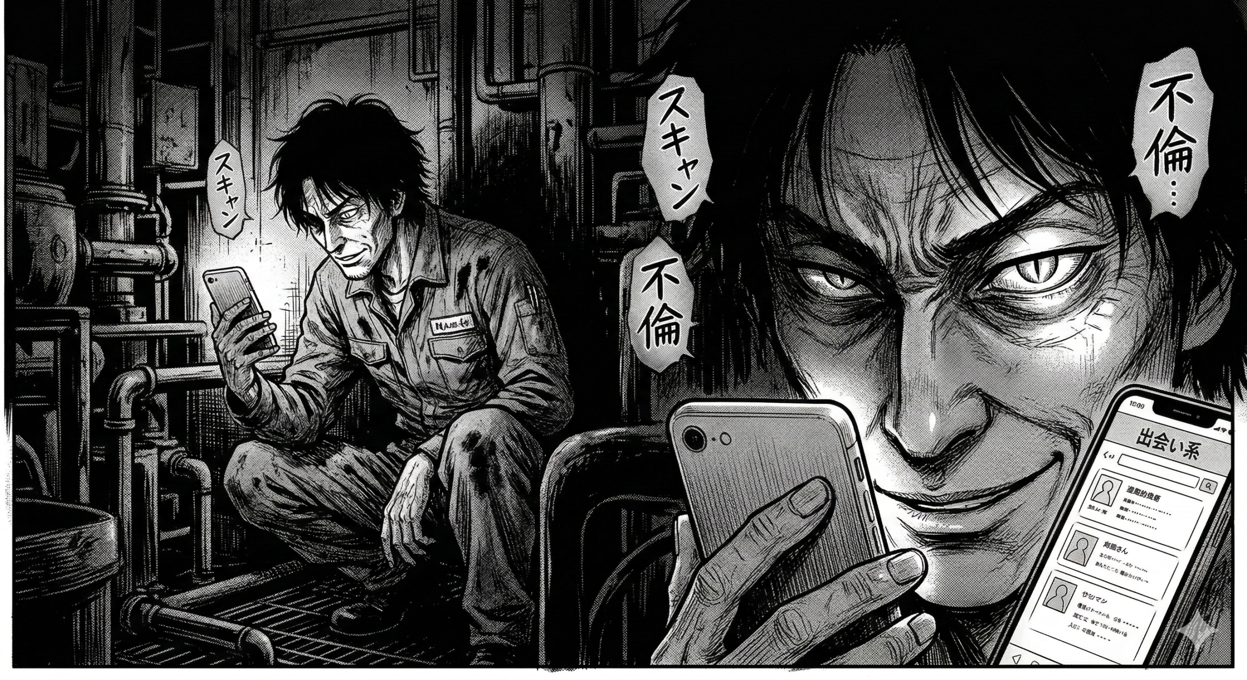 この洞察力は長年のナンパと出会い系遊びで磨かれたものです。欲望が渦巻く海で飢えている者を仕分ける千枚通しのような勘。中小企業の閉鎖的な環境においてこの技術は核兵器に等しい破壊力を持ちます。彼は善悪を超越した場所で女の弱みを握ります。それを自分の栄養に変えて生き延びているのです。